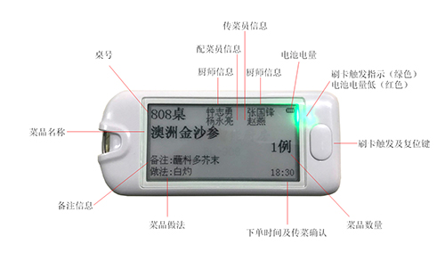 廚房出菜卡BL-908是在廚房流程中給予各個(gè)環(huán)節(jié)傳遞菜品信息和收集人員信息的主要工具。BL-908出菜卡經(jīng)過(guò)嚴(yán)格工業(yè)測(cè)試,防摔防水,一次充電1小時(shí),可以連續(xù)使用1個(gè)月以上,待機(jī)超過(guò)90天,墨水屏完全媲美熱敏紙張。